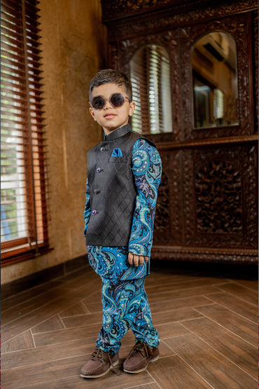 Black Bundi With Printed Kurta Set Category - Kurta Set