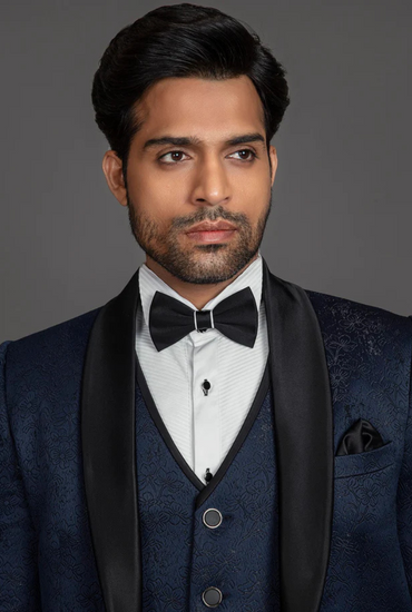 An exquisite suit crafted from self-printed jacquard fabric, elegantly paired with a sophisticated tuxedo shirt, for a refined and polished look. Category - Suit