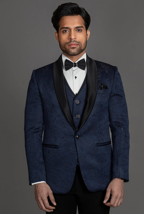 FLORAL JACQUARD NAVY BLUE TUXEDO SUIT