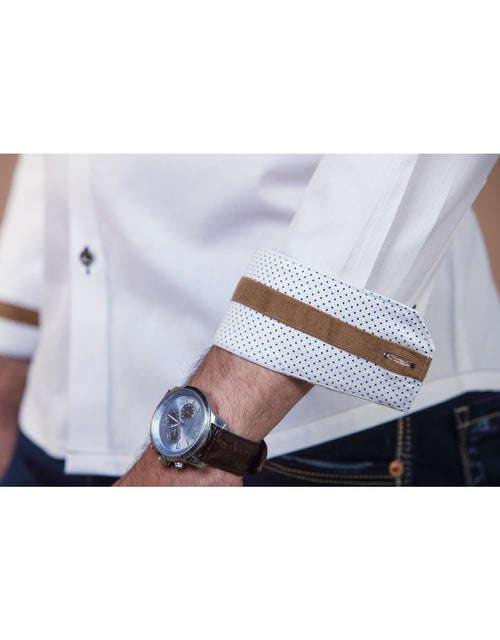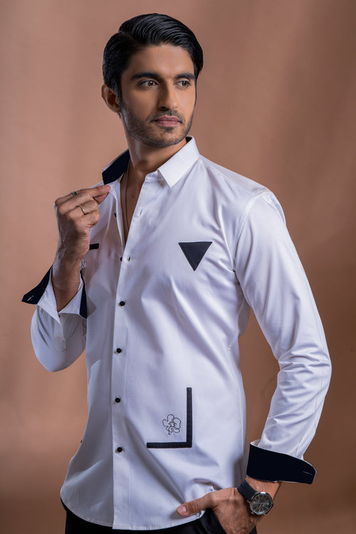 Pure White Cotton Shirt with Abstract Geometric Design – Features subtle artistry and a relaxed fit for modern, purposeful elegance. Fabric - Cotton