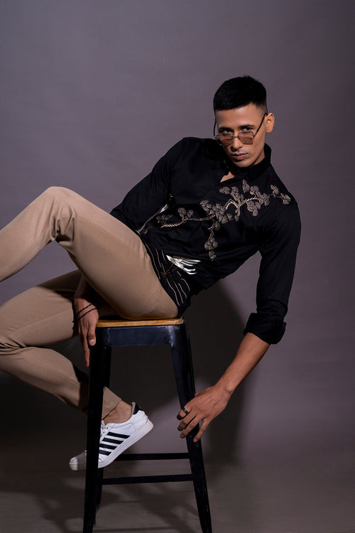 GOLDEN BLACK SEQUENCE EMBROIDERY SHIRT