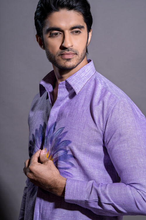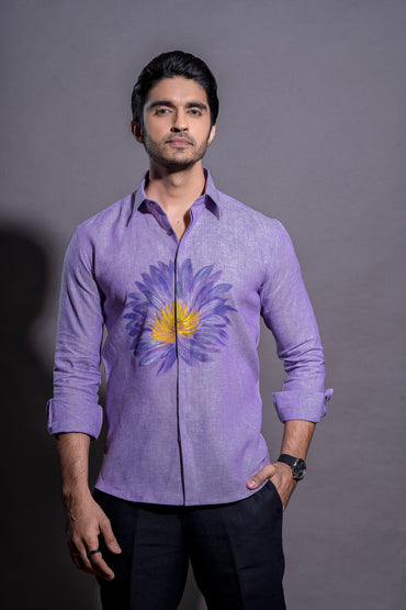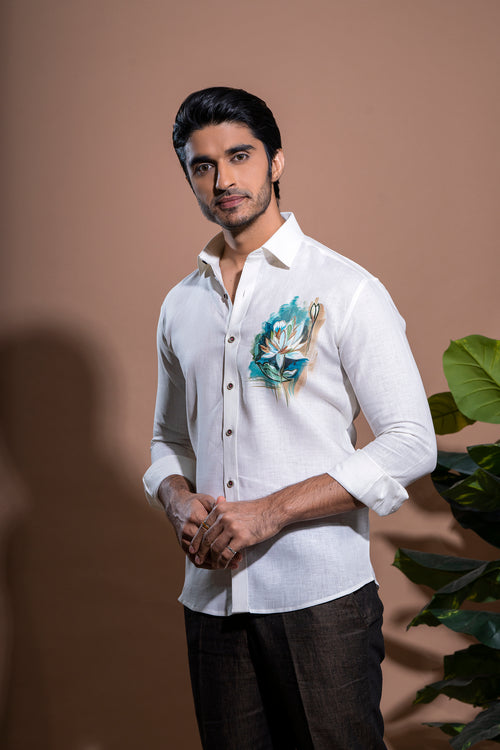 Premium, breathable linen full sleeves shirt with hand painted lotus flower. Fabric - Linen