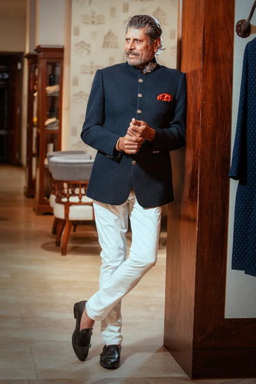 Kapil Dev Classic Bandhgala with Embroidery on Collar