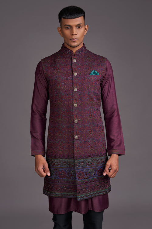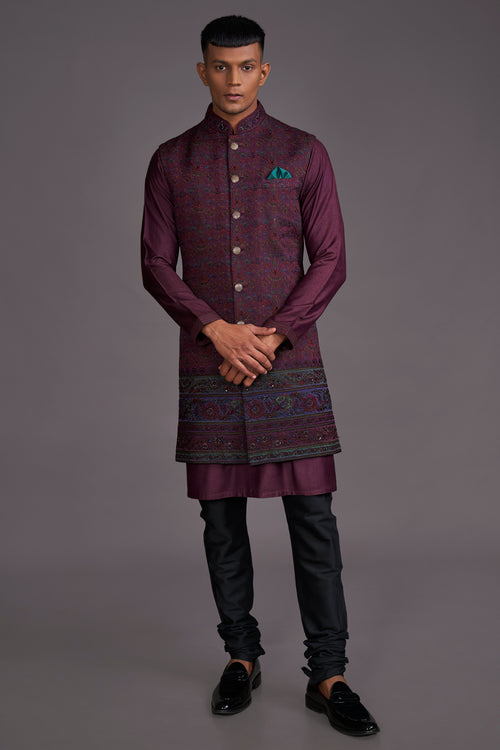 MAROON SILK JODHPURI WITH ALL OVER EMBROIDERY Category - JODHPURI SET