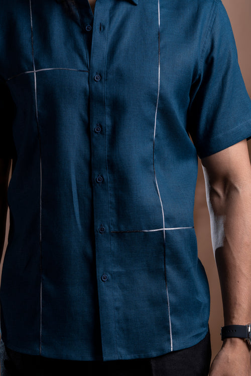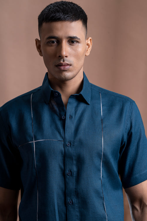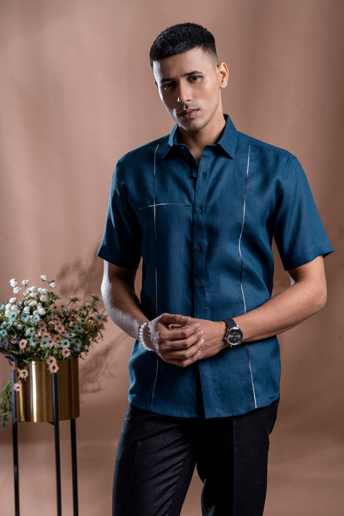 Beat the heat this summer with the blue embroidered linen shirt. Designed to keep your style while making a classy look with soft and comfortable fabric....