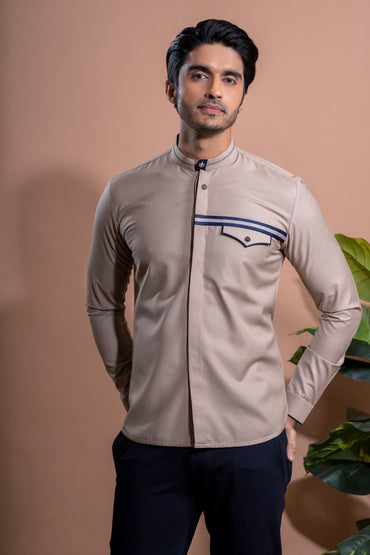 The shirt is crafted using the softest tetra rayon and featured fine hand-pleated detailing along with a structured mandarin collar creating a refined silhouette. Fabric -...