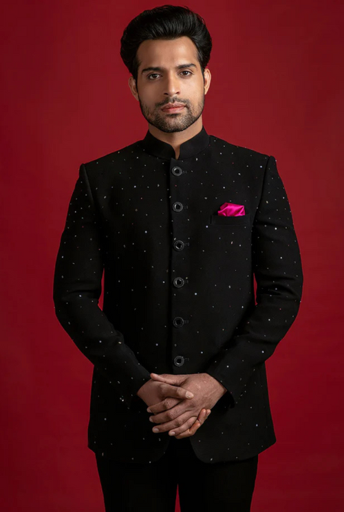 Black or navy bandhgala suits are perfect for formal events. Keep accessories minimal and pair with polished shoes for sleek sophistication.