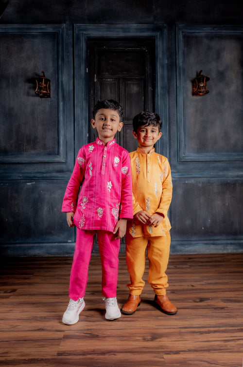 Hot Pink & Yellow Kurta Hand Embroidered Work