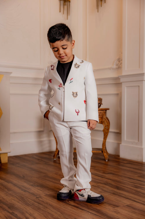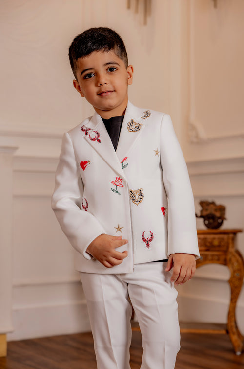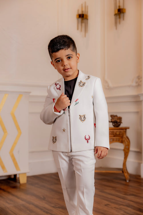 WHITE BOMBER JACKET WITH ALL OVER EMBROIDERY Category - BOMBER JACKET