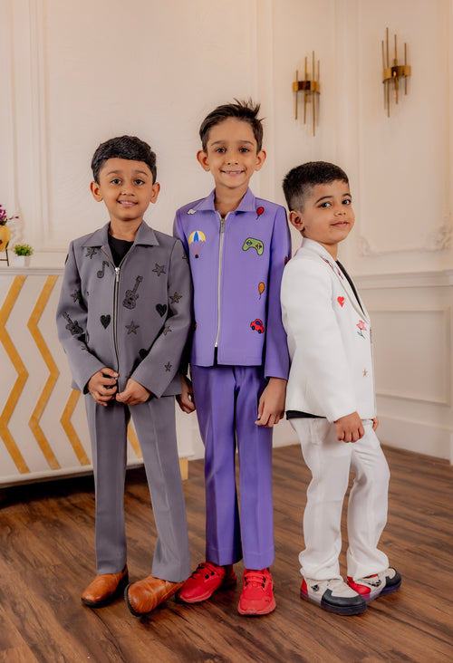 BLUE BUNDI WITH PURPLE KURTA WIH EMBROIDERD BUNDI KURTA SET Category - Kurta