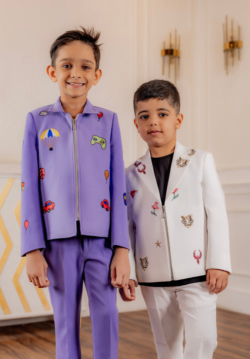 PURPLE BOMBER JACKET WITH MULTICOLOUR EMBROIDERY Category - BOMBER JACKET