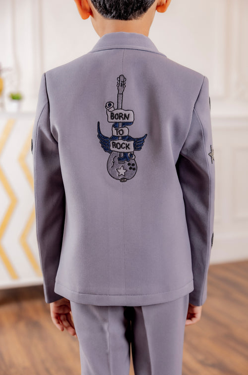 GREY BOMBER JACKET WITH HAND EMBROIDERED Category - BOMBER JACKET
