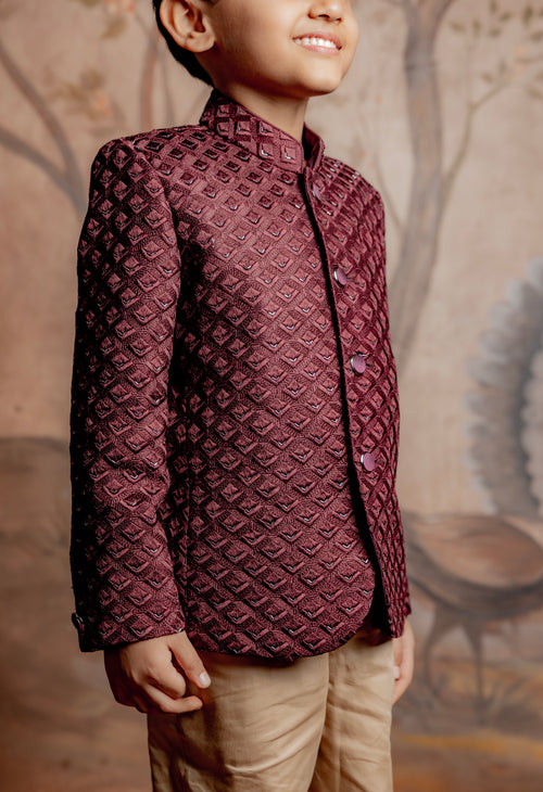 MAROON SILK JODHPURI WITH ALL OVER EMBROIDERY Category - JODHPURI SET
