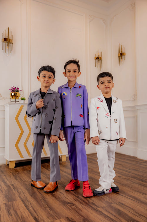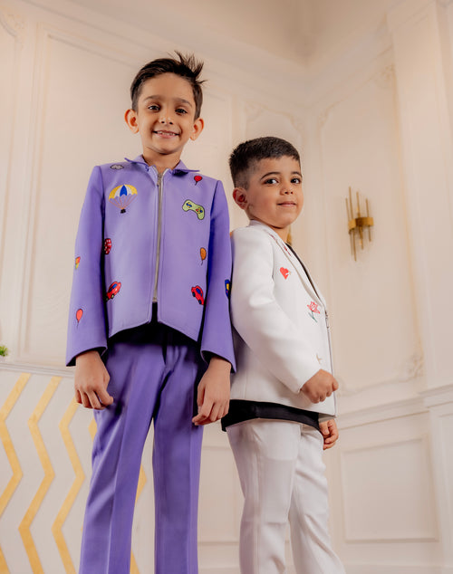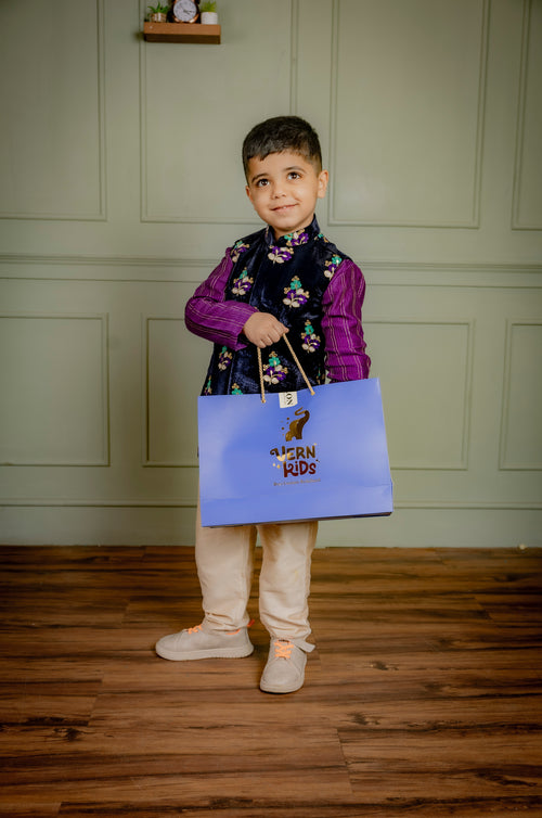 BLUE BUNDI WITH PURPLE KURTA WIH EMBROIDERD BUNDI KURTA SET Category - Kurta