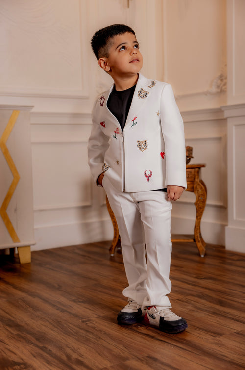 WHITE BOMBER JACKET WITH ALL OVER EMBROIDERY Category - BOMBER JACKET