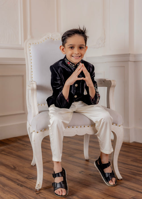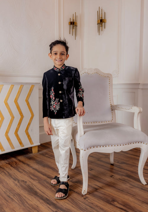 BLACK VELVET JODHPURI WITH MULTICOLOUR EMBROIDERY Category - JODHPURI SET
