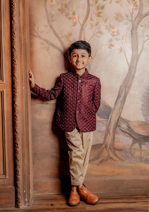 MAROON SILK JODHPURI WITH ALL OVER EMBROIDERY Category - JODHPURI SET