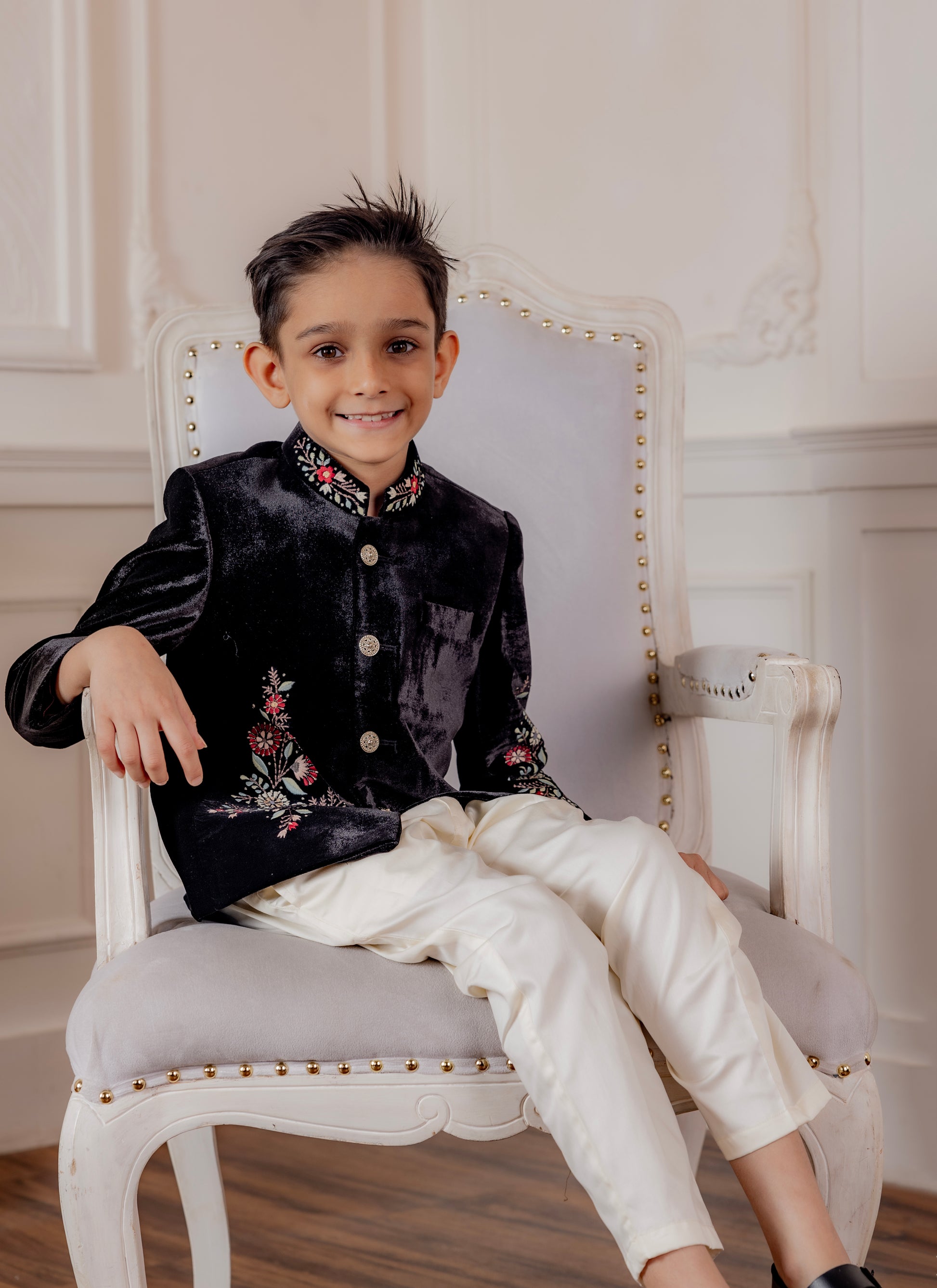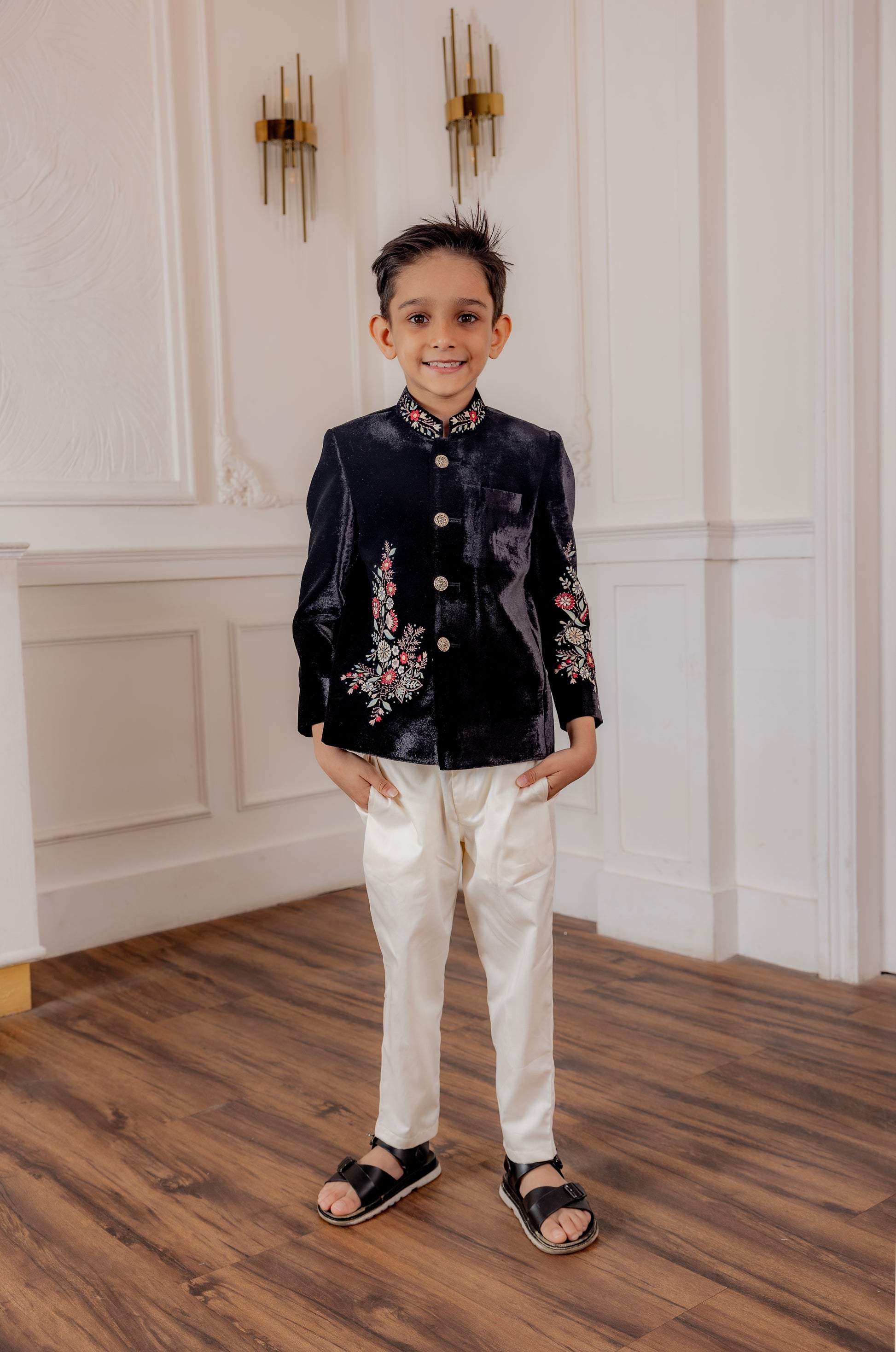 BLACK VELVET JODHPURI WITH MULTICOLOUR EMBROIDERY
