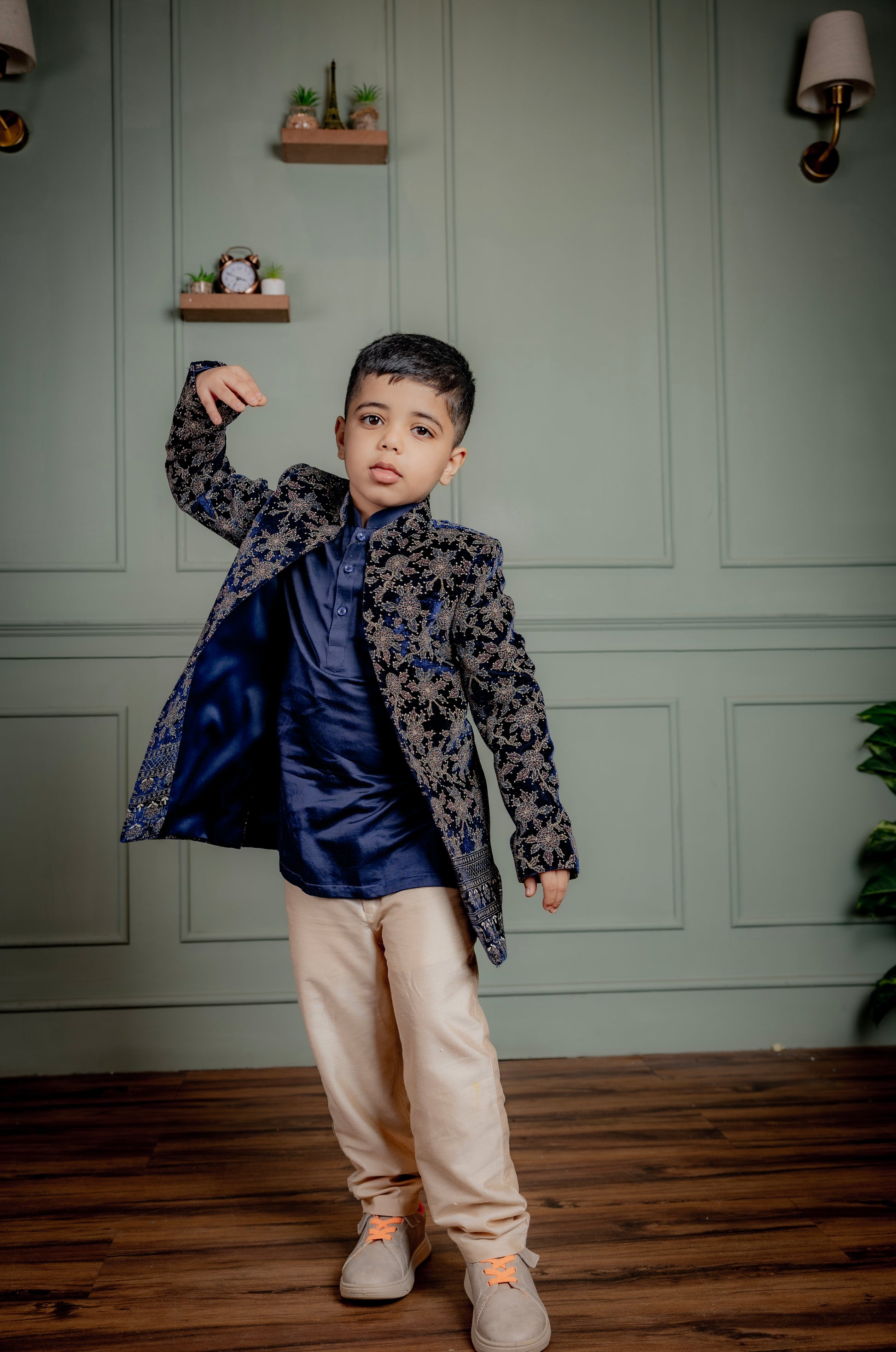 BLUE VELVET EMBROIDERED OPEN STYLE INDO WESTERN