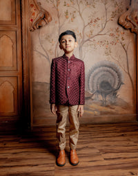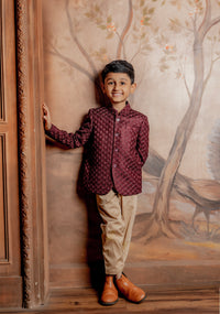 MAROON SILK JODHPURI WITH ALL OVER EMBROIDERY
