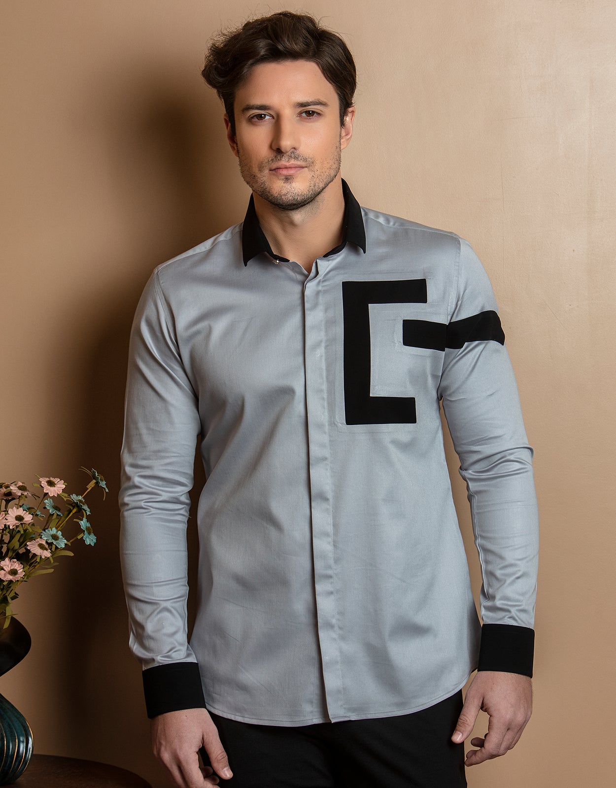 SILVER GREY SHIRT WITH ABSTRACT PATCH