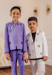 PURPLE BOMBER JACKET WITH MULTICOLOUR EMBROIDERY