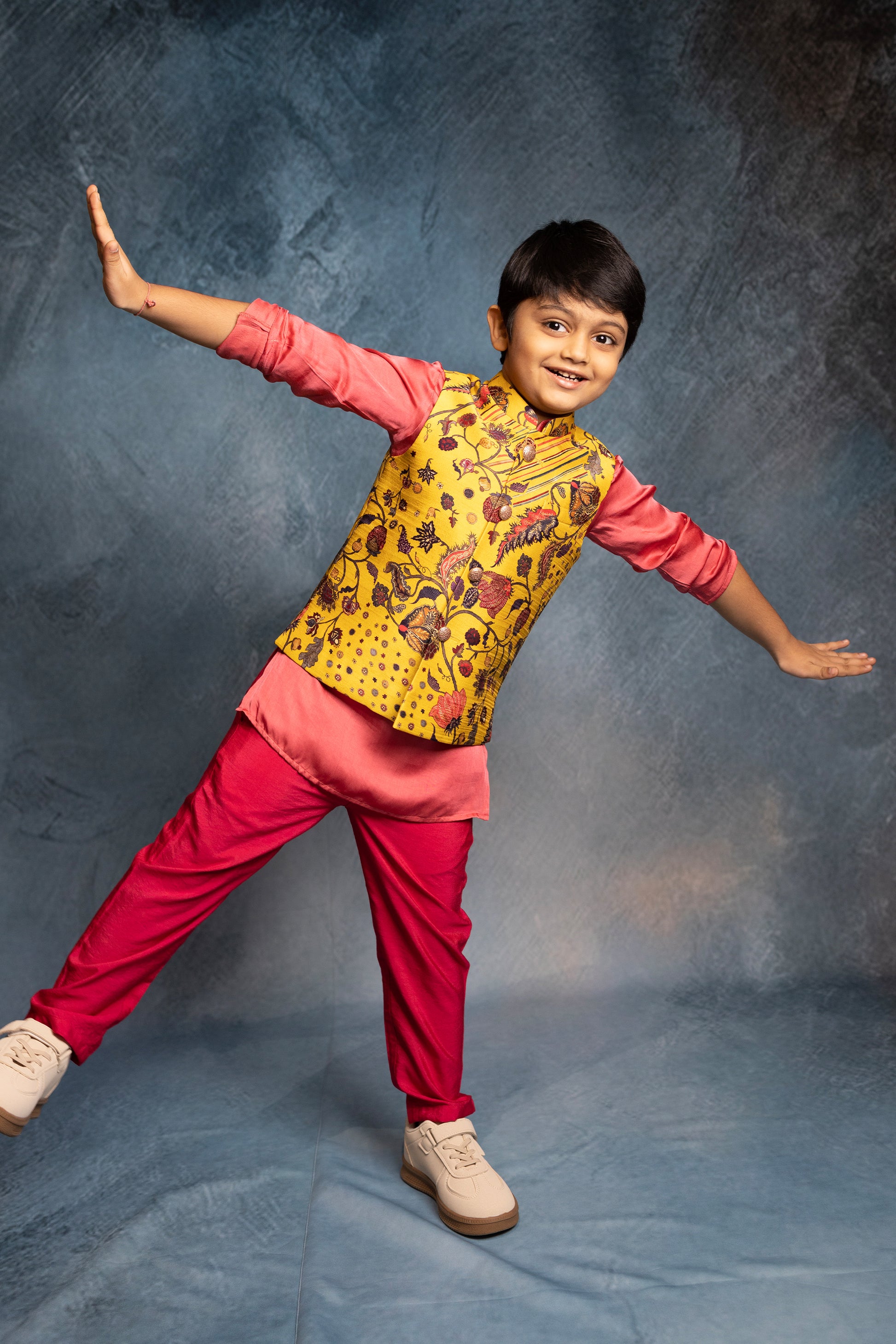 YELLOW PRINTED BUNDI WITH KURTA SET